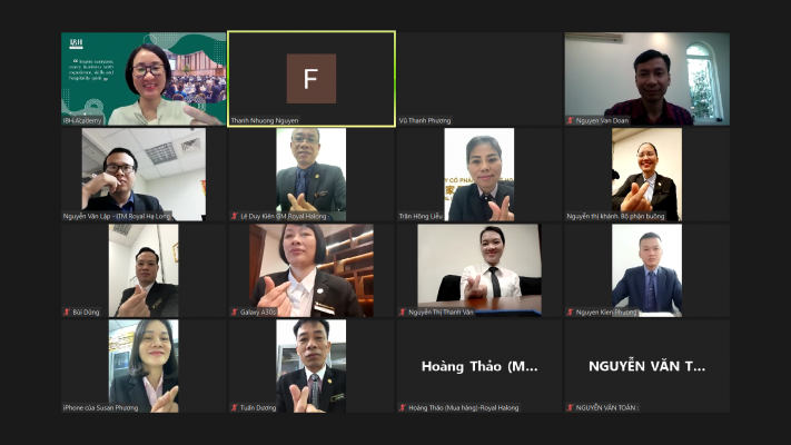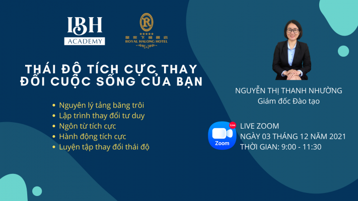 In the morning of December 3rd, 2021, Ms. Nguyen Thi Thanh Nhuong – Training Director of IBH Academy conducted an online training course “How positive attitude changes your life” for 15 members of Royal Halong Hotel. The course provides useful knowledge about positive thinking, positive words, positive actions, and creates opportunities for participants to share their own stories and personal experiences to improve relationships in their lives and works.