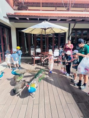 Với sự hướng dẫn nhiệt tình của các cô chú là chuyên gia của Học viện Đào tạo Mến khách IBH và các giáo viên của trường St. Nicholas, các bạn nhỏ đã được khám phá và trải nghiệm những hoạt động thú vị như cho chim công ăn, thăm khu vườn nhiệt đới xanh mát, thăm trang trại của Furama Resort Đà Nẵng, cho thỏ ăn, ….