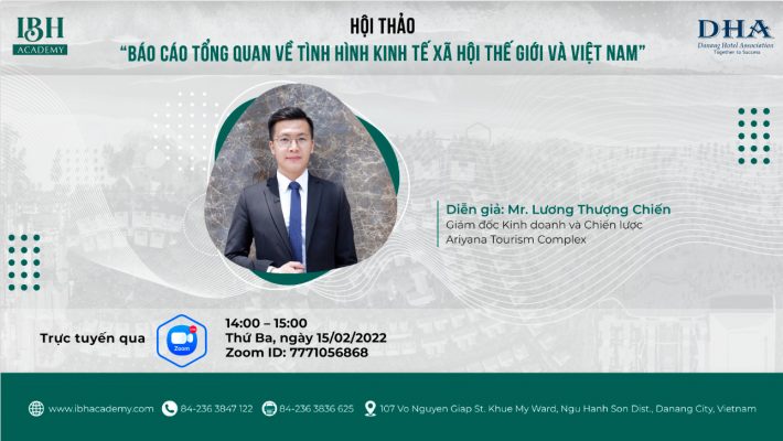On the afternoon of February, 15th, 2022, IBH Academy cooperated with Da Nang Hotel Association to organize the seminar on ‘Socio-Economic Situation, Tourism’. Mr. Luong Thuong Chien – Sale Director of Da Nang Ariyana Tourism Complex updated information on the socio-economic and tourism situation worldwide and in Vietnam to 60 General Directors, Deputy General Director, Sale & Marketing Director of resorts and hotels in Danang and Quang Nam province.