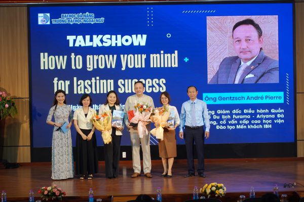 On the afternoon of April 14th, 2023, at the Conference Hall of the University of Foreign Language Studies, the University of Danang, the Talkshow “How to grow your mind for lasting success” took place with the presence of Assoc.Prof.Dr. Tran Huu Phuc – Rector of the university, the speaker is Mr. Gentzsch André Pierre – General Manaager of Furama – Ariyana Tourism Complex, Senior Advisor of IBH Academy, Ms. Nguyen Thi Minh Tam – Managing Director of IBH Academy, Ms. Nguyen Thi Thanh Nhuong – Training Director of IBH Academy and more than 300 students from University of Foreign Languag Studies, University of Danang.