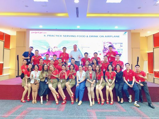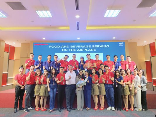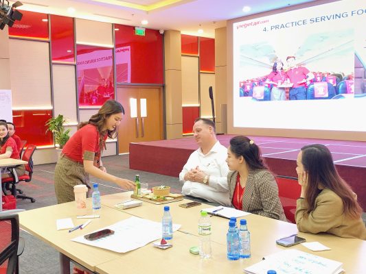 On November 14-15, 2024, IBH Academy successfully conducted a training course for nearly 100 flight attendants from VietjetAir on the topic of “Food and Beverage Serving on the Airplane” at Vietjet Aviation Academy. The course provided knowledge of 5-star F&B service practices to create a personalized experience for passengers, especially at Business Class.