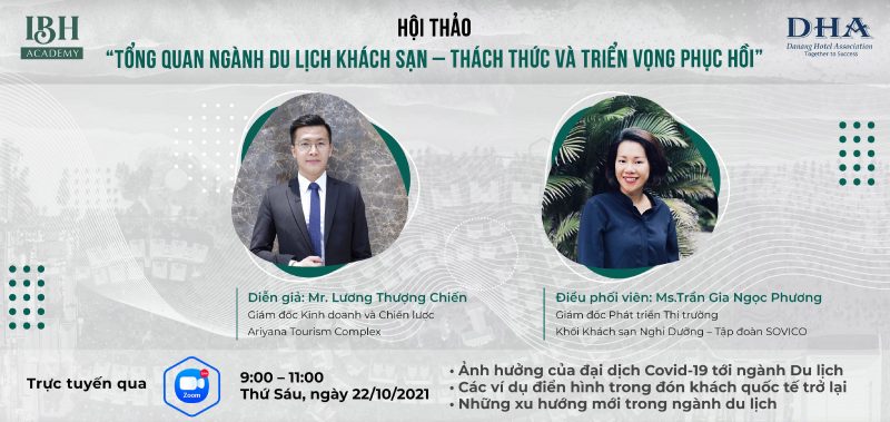 Sáng ngày 22/10/2021, Học viện Đào tạo IBH phối hợp với Hội Khách sạn Đà Nẵng tổ chức hội thảo “Tổng quan ngành Du lịch Khách sạn – Thách thức và Triển vọng phục hồi” với sự tham gia của lãnh đạo Sở Du lịch Đà Nẵng, Hội Khách sạn Tp. Đà Nẵng và 52 Tổng Giám đốc/ Phó TGĐ Điều hành, Giám đốc Kinh doanh, Tiếp thị, Nghiên cứu Thị trường của các khách sạn, khu nghỉ dưỡng tại Đà Nẵng.