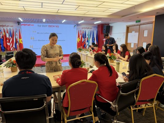 Khóa đào tạo góp phần giúp các thành viên của Trung tâm khai thác dịch vụ mặt đất Vietjet chuyên nghiệp trong giao tiếp và tự tin khi xử lý những tình huống với khách hàng.
