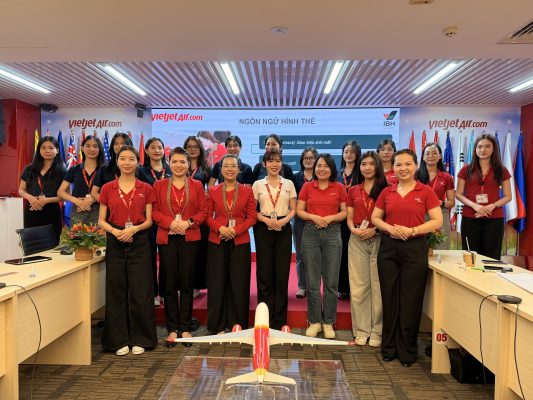 Học viện Đào tạo Mến khách IBH rất vinh dự tiếp tục được đồng hành cùng công ty Cổ phần Hàng không Vietjet trong chuỗi các lớp đào tạo về “Kỹ năng chăm sóc khách hàng và xử lý các tình huống với khách hàng” cho cán bộ nhân viên trung tâm dịch vụ mặt đất tại Sân bay Quốc tế Tân Sơn Nhất.