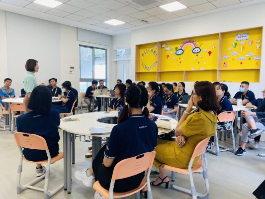 Ngày 09/08/2023, tại hội trường của trường Victoria Nam Sài Gòn, Học viện Đào tạo Mến khách IBH đã tiến hành khóa đào tạo Quy chuẩn giao tiếp cho 100 giáo viên và cán bộ nhân viên của trường. Dưới sự hướng dẫn của bà Nguyễn Thị Minh Tâm – Giám đốc Điều hành Học viện, bà Nguyễn Thị Thanh Nhường – Giám đốc Đào tạo, ông Daniel Chanteloup – Chuyên gia đào tạo trong lĩnh vực dịch vụ khách hàng, các giáo viên và thành viên của trường Victoria Nam Sài Gòn đã được chia sẻ những kiến thức rất hữu ích về phong cách chào hỏi, quy chuẩn ngoại hình, ngôn ngữ hình thể tích cực, trao và nhận danh thiếp và bắt tay.