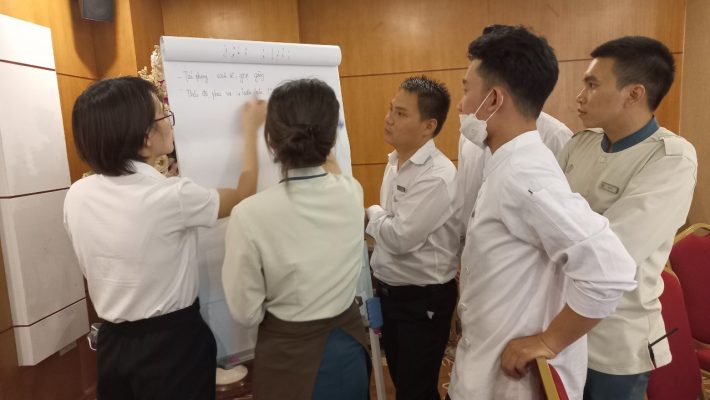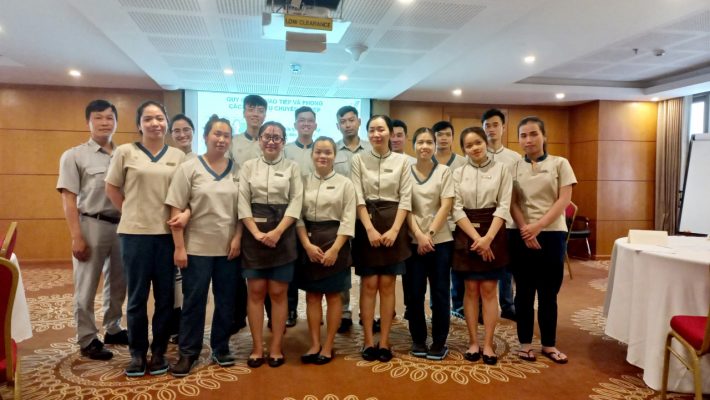 Từ ngày 24-31/05/2022, Học viện đào tạo Mến khách IBH đã tổ chức khóa đào tạo Quy chuẩn giao tiếp và Phong cách phục vụ chuyên nghiệp cho 33 cán bộ nhân viên của khách sạn Diamond Sea. Dưới sự hướng dẫn của bà Nguyễn Thị Minh Tâm – Giám đốc Điều hành Học viện và bà Nguyễn Thị Thanh Nhường – Giám đốc đào tạo, các học viên đã được thực hành những quy chuẩn giao tiếp theo tiêu chuẩn quốc tế như cách chào hỏi, tự giới thiệu, trao danh thiếp, bắt tay…